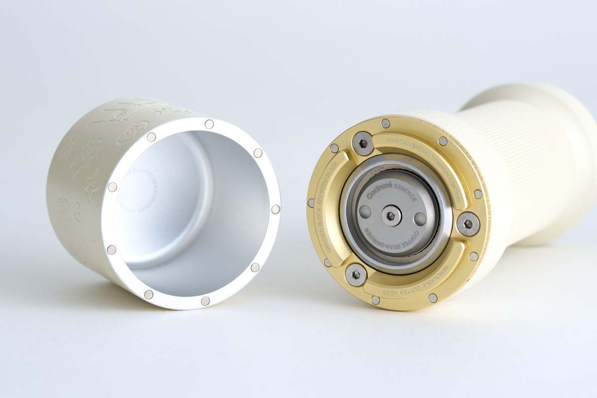 手挽きの風味と電動の手軽さを楽しむことができる2WAYコーヒーミル。独自に開発された10枚刃「鬼刃」により、挽く際の抵抗が軽減され、挽き目の仕上がりも向上するという。コーヒーの抽出率や風味の豊かさが飛躍的に向上し、ユーザーに甘みとコクをもたらす。