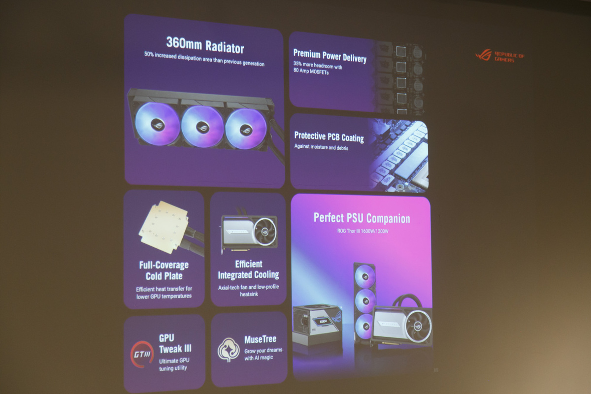 ここからは仕切り直して、ROG Astralシリーズの製品解説。ジョージさんがアピールしたポイントを要約すると、以下のような感じだった。