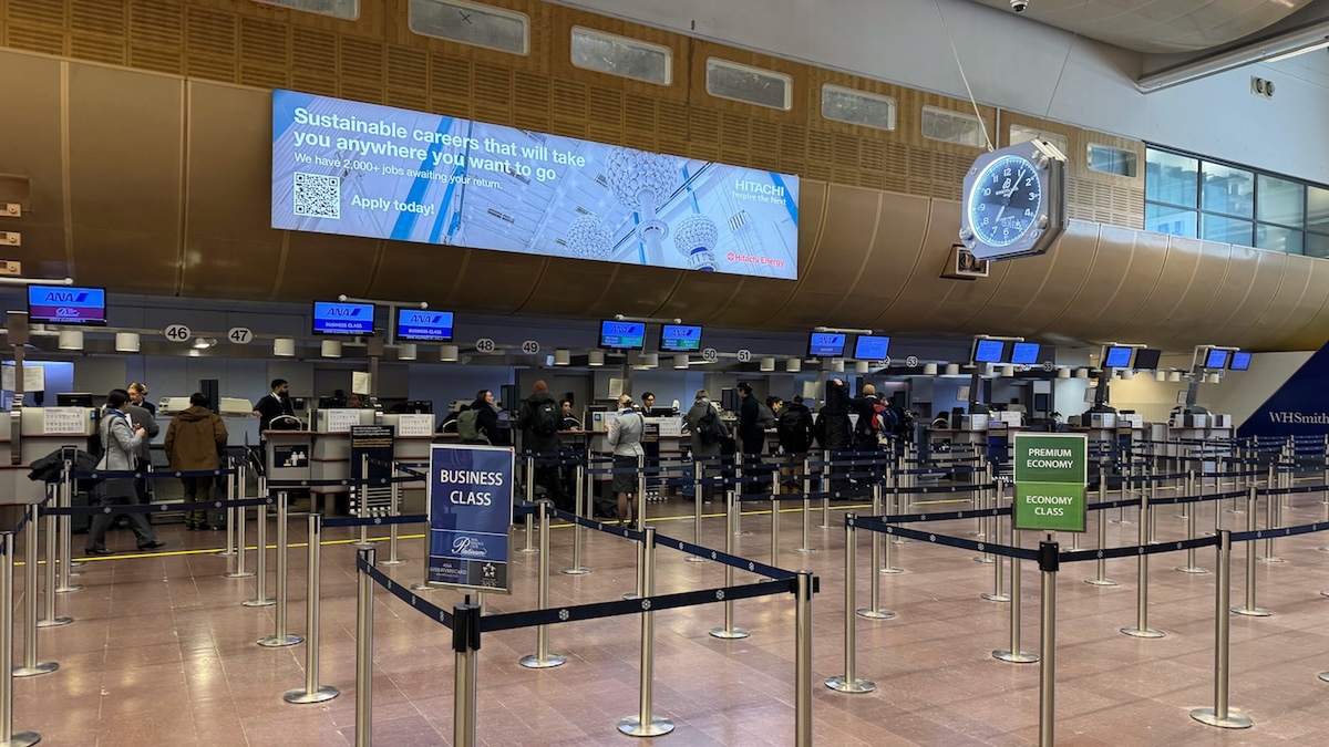 出発も到着と同じくターミナル5を使用。チェックインカウンターはゾーン5でした。事前に復路は満席という話を聞いていたので覚悟していましたが、なんとプレミアムエコノミーへとアップグレードとなりました。羽田到着後にそのまま取材が入っていたので、これはありがたい。