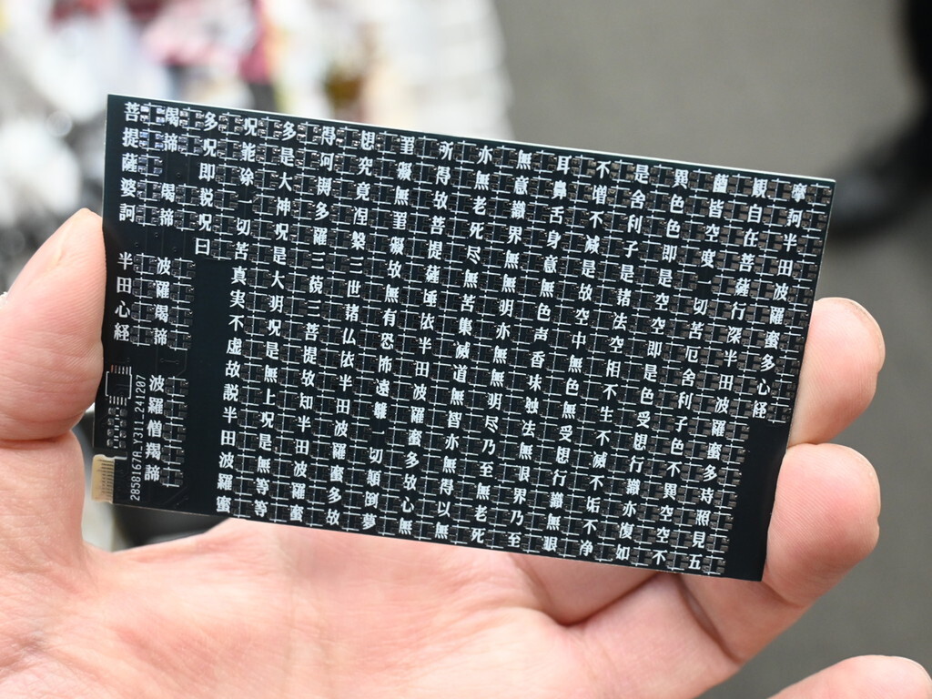 細かすぎるはんだ作業を無心に繰り返すことで完成する、般若心経ならぬ“半田心経”の工作キット。名刺サイズの基板にはびっしりと印刷された、(「般若」の文字が「半田」に置き換えられた)お経がインパクト抜群だ。