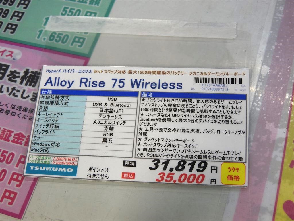 HyperXから、ゲーミングキーボード「Alloy Rise 75」のワイヤレス対応モデル「Alloy Rise 75 Wireless」が登場した。価格は3万5000円。パソコンショップアーク、TSUKUMO eX.で販売中だ。
