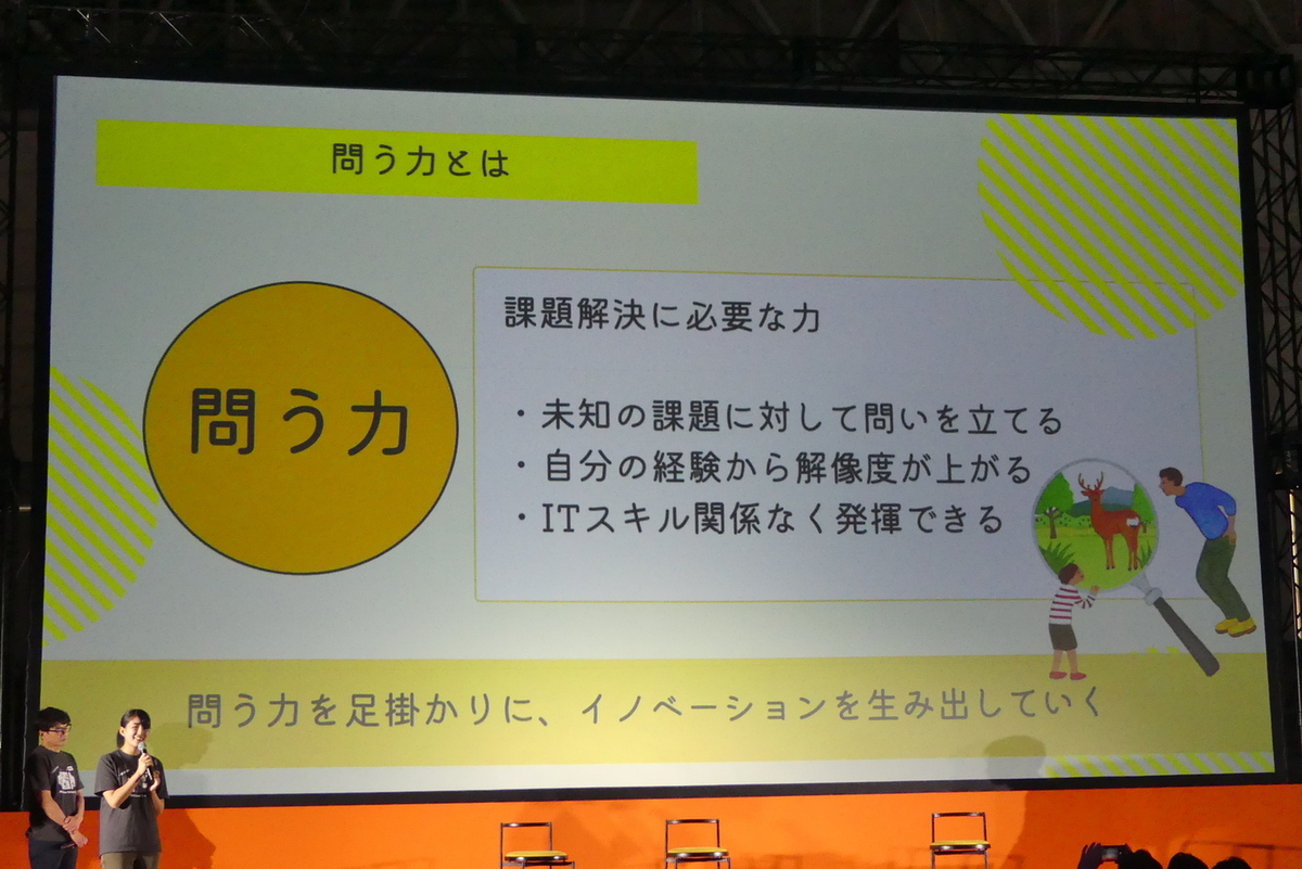 「問う力」とはなにか? 小竹氏は、「未知の課題に対して問いを立てる力」と説明する。この問う力を上げると、自らの経験から解像度を上げることができる。また、ITスキル関係なく発揮できる力であり、これをきっかけにイノベーションを生み出していくことが今後重要になると小竹氏は指摘する。