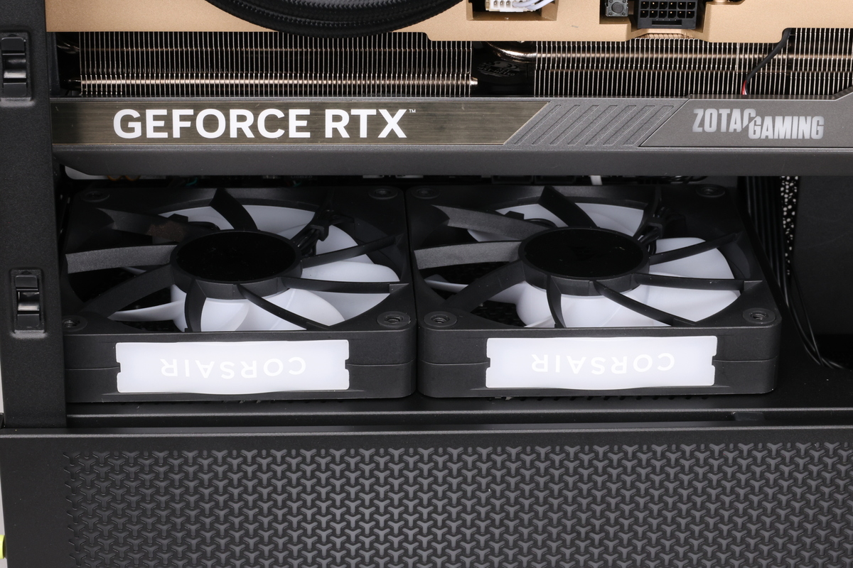 また、GeForce RTX 50シリーズを始めとしたハイエンドのビデオカードは発熱が多くなりがちなだけに、ここを集中して冷やしたいという要望もあるだろう。そういった人のために、ビデオカードのスグ下にもファンを搭載できるスペースが確保されている。
