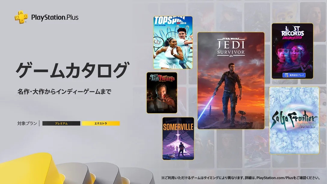 月ごとに取り上げるタイトルの傾向もかなり異なる「ゲームカタログ」。今月はスクウェア・エニックスの「サガ フロンティア リマスター」、エレクトロニック・アーツの「STAR WARS ジェダイ:サバイバー」が追加され、反響を呼んでいる。