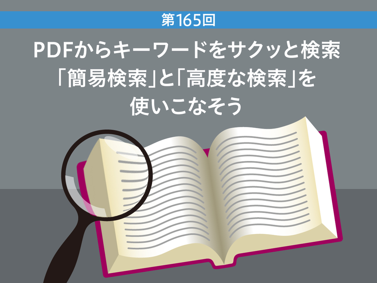本連載は、Adobe Acrobatを使いこなすための使い方やTIPSを紹介する。第165回は、2種類あるPDF内の検索機能「簡易検索」と「高度な検索」について紹介する。