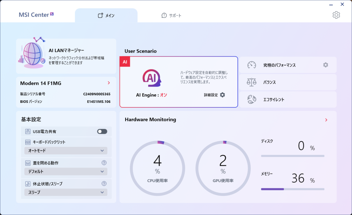 システム管理アプリ「MSI Center S」がAIで最適化