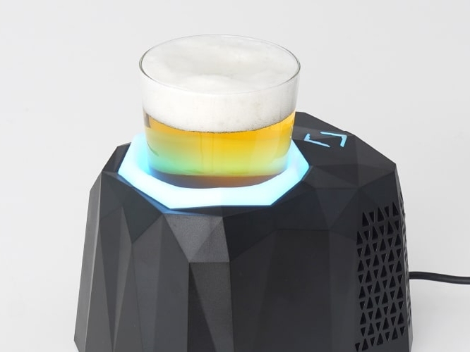 また、本体上部にはLEDインジケータを搭載。冷却プレートの温度に合わせて色が変化し、冷え具合をひと目で確認できる。電源は9V/3A対応のUSB PD給電に対応。USB PD対応のACアダプタとUSB Type-Cケーブルが付属するほか、PD対応モバイルバッテリを使用することもできるため、屋外での使用も可能だ。