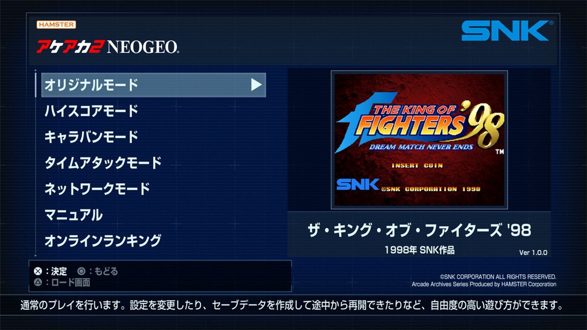 ※PlayStation 4版「アケアカNEOGEO ザ・キング・オブ・ファイターズ ‘98」をお持ちの方は330円でご購入いただけます。