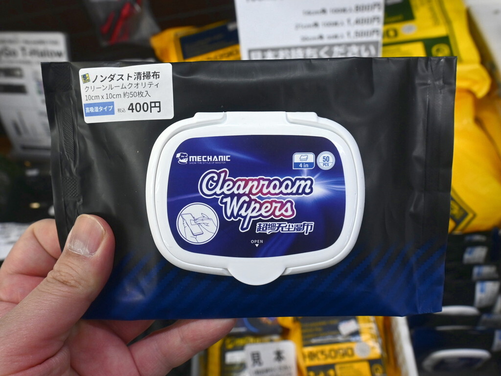 なお、10cm~21cm角モデルは約100枚入り、大判の30cm角モデルは約50枚入り。そのほかクリーニングクロスのようなタイプとは異なる、ウェットタイプのノンダスト清掃布も入荷し、50枚入り400円で販売されている。