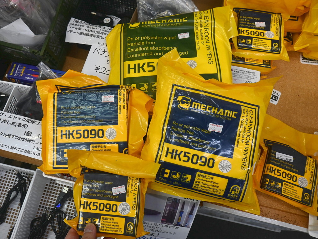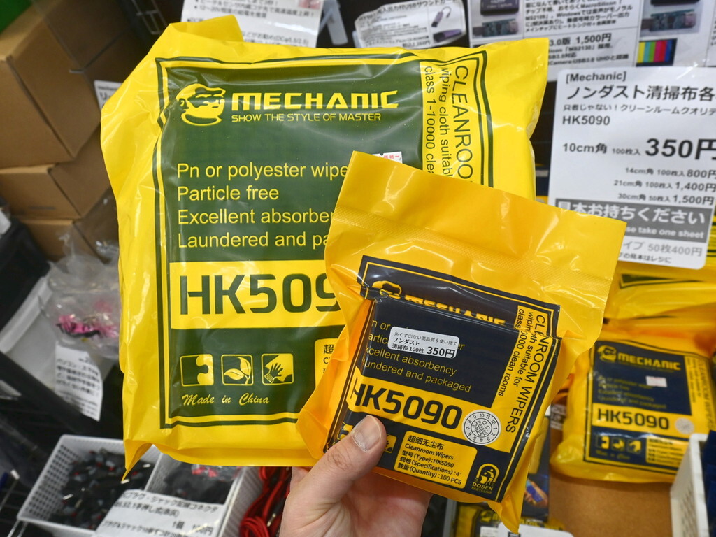 クリーンルーム品質を謳うHong KONG MECHANICのクリーニングクロス「ノンダスト清掃布 (HK5090)」に新バリエーション。最大30cm角の大判モデルが入荷している。