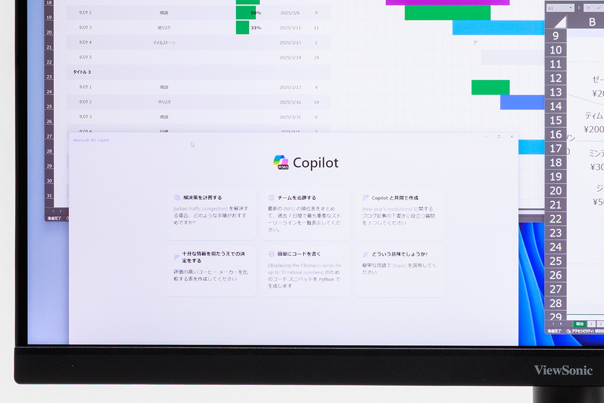 4K解像度のメリットを最大限に生かすには、やはり適切な画面サイズが必要だ。27型よりも小さいディスプレーの場合、等倍表示にすると文字やアイコンが小さくなりすぎてしまうが、31.5型クラスになると一定の視認性が確保される。4Kディスプレーをデスクトップ用途で考えるなら、最適なサイズ感だと言える。