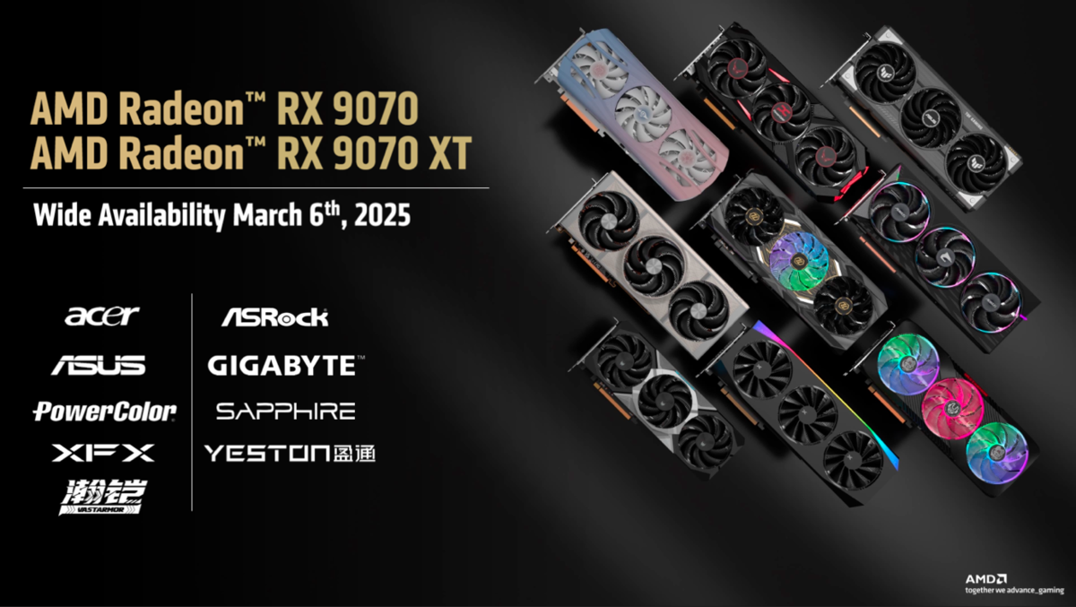 YouTubeの発表でRX 9070シリーズの北米予想価格が発表された。RX 9070は549ドル、RX 9070 XTは599ドルスタートとなる。RTX 5070の549ドルをかなり意識した価格設定だが、RX 9070シリーズの方がVRAM搭載量が多いという強みがある。