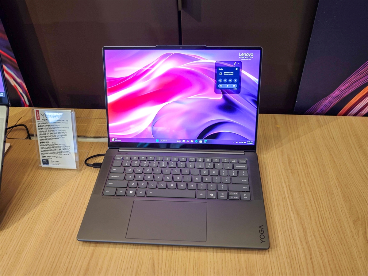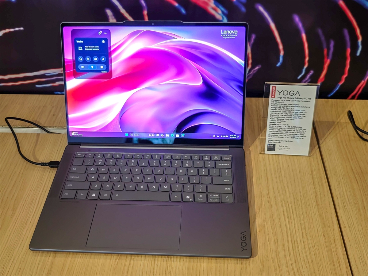 Aura Editionシリーズは、同じくCore Ultra 9 285Hを搭載し、グラフィックはIntel Arcの「Yoga Pro 7i Aura Edition」もラインアップしている。Lenovo Yoga Pro 9i Aura Editionは2025年6月発売予定で、価格は1699ユーロ(26万5630円)から。Yoga Pro 7i Aura Editionは3月発売で価格は1399ユーロ(約21万9000円)から。