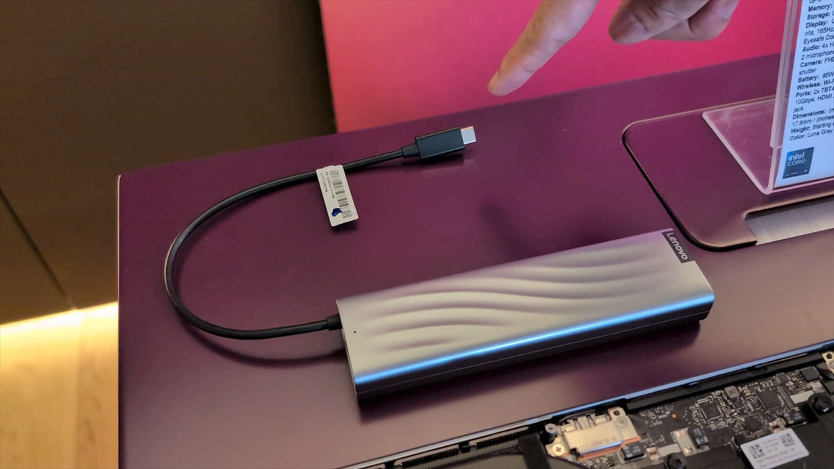 そのほか、NPUを搭載していないPCでも使用できる、外付けのLenovo AI Stickも発表。説明会会場では、M.2接続のタイプとType-Cで接続するスティックタイプのモデルを展示。32TOPSの性能で、Lenovo AI Now11などが利用できるとのこと。