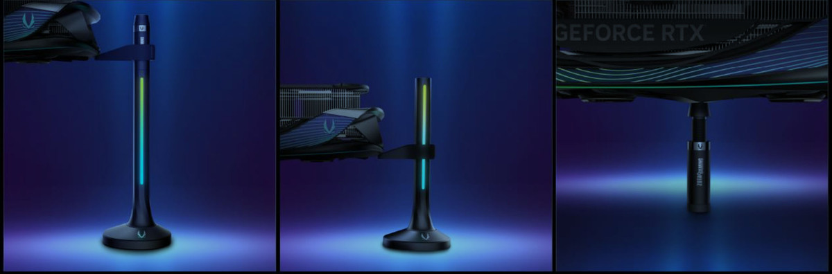 ZOTAC公式ダイレクトショップ「ZOTAC Direct」で購入すると、LEDライティング機能搭載のGPUサポートスタンド「ZOTAC GAMING DUO ARGB GPU Support Stand」が同梱される。購入はぜひ公式オンラインストアにて。