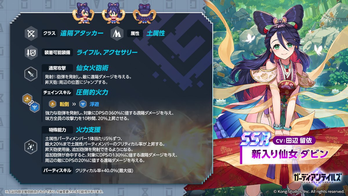 KongStudiosは3月5日、iOS/Android向けドット絵アクションRPG『ガーディアンテイルズ』において、土属性の遠隔アタッカーの新英雄「ダビン」(CV:田辺留依さん)を実装した。