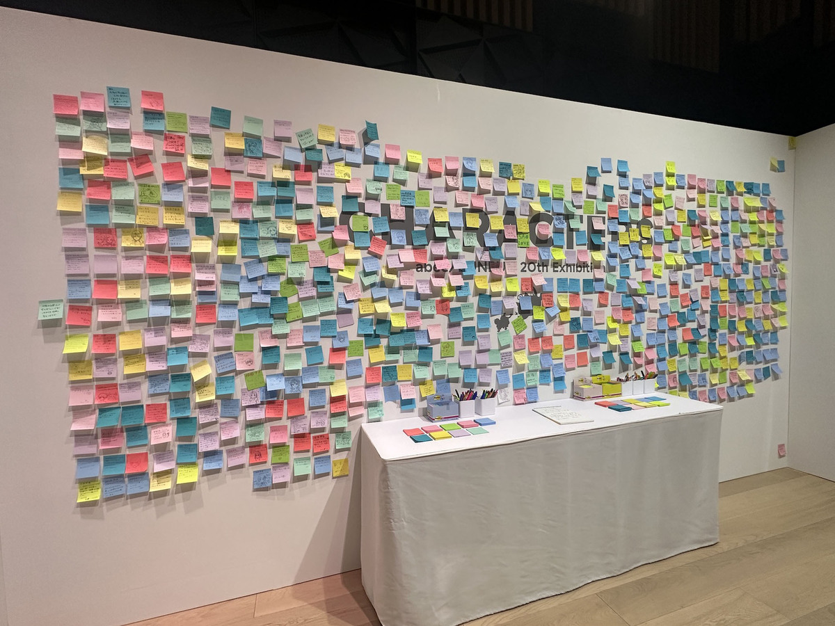 abec/BUNBUN先生の活動20年を楽しめる展覧会。その作品たちの美しさ、可愛さ、繊細さに心を奪われるばかりでした。どうやら同じ想いだったらしい先に訪れた来場者が付箋に想いを残していて、「いつも素敵なイラストをありがとうございます!」「描き下ろし最高です!」といったコメントが見られました。