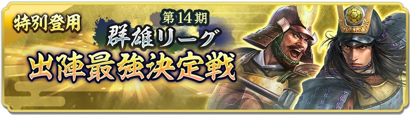 「出陣最強決定戦」では、通常の群雄リーグと異なり、所属勢力による威名ボーナスや「ゆかりの地ボーナス」(特定のゆかりの地や勢力に所属する武将の威名が上昇するボーナス)はない。制圧率に応じて、編成した部隊の能力(兵数・攻撃・防御・兵法)が上昇する「領地ボーナス」は通常通り活用できる。全国の武将を編成して、実力を競おう。