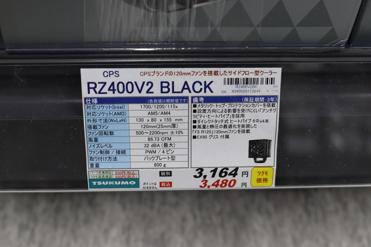 大阪・日本橋のPCパーツショップ「ツクモLABI1なんば店」を取材。店舗スタッフ・山崎隆史さんのオススメは、CPSのサイドフロー型空冷CPUクーラー「RZ400V2 BLACK」です。