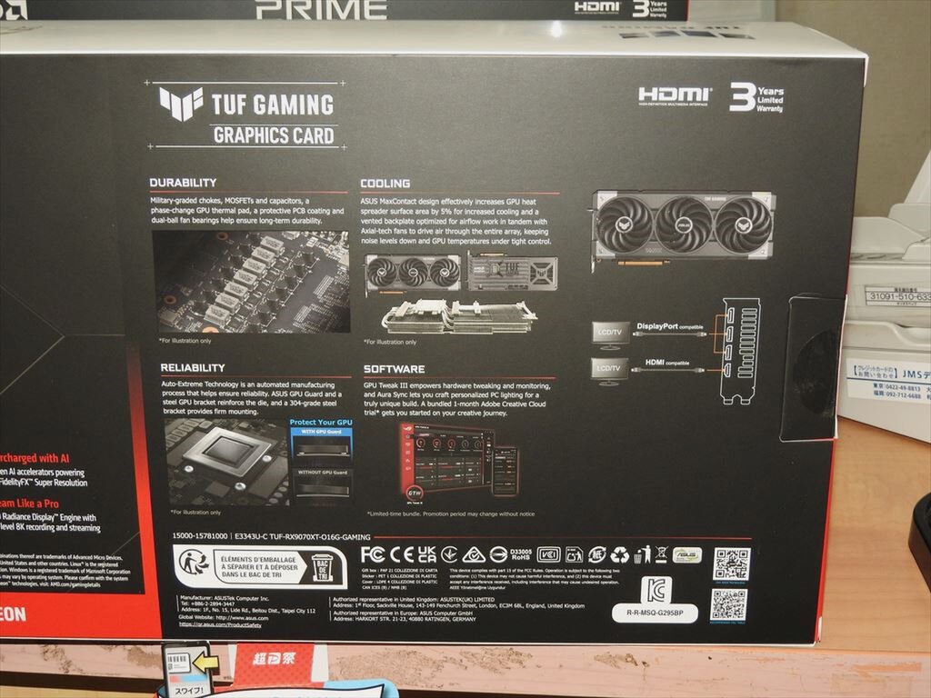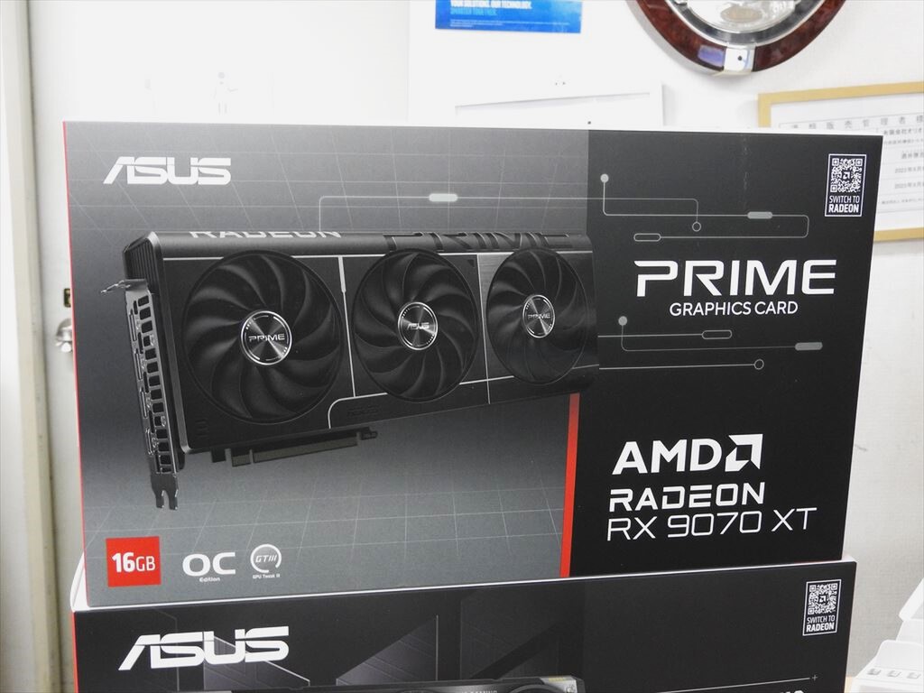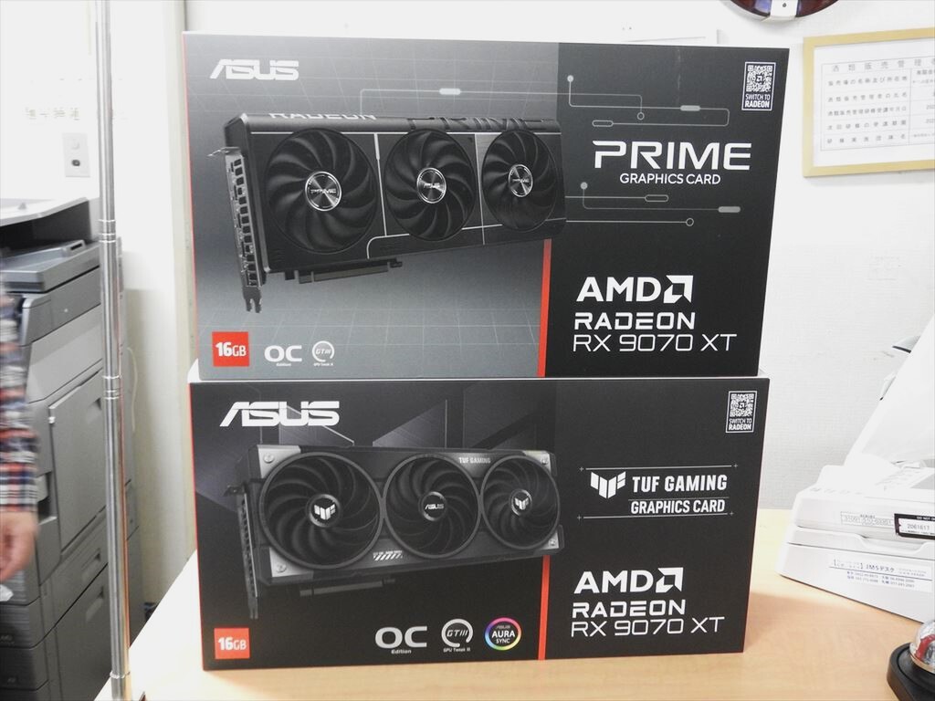 ASUSから、Radeon RX 9070 XT/RX 9070搭載ビデオカードが登場。発売されたのは「Prime Radeon RX 9070 XT OC Edition」(13万8800円)、「TUF Gaming Radeon RX 9070 OC Edition」(12万9800円)、「TUF Gaming Radeon RX 9070 XT OC Edition」(15万4800円)の3モデル。秋葉原ではパソコンショップアーク、オリオスペックで入荷を確認したがいずれも完売となっている。