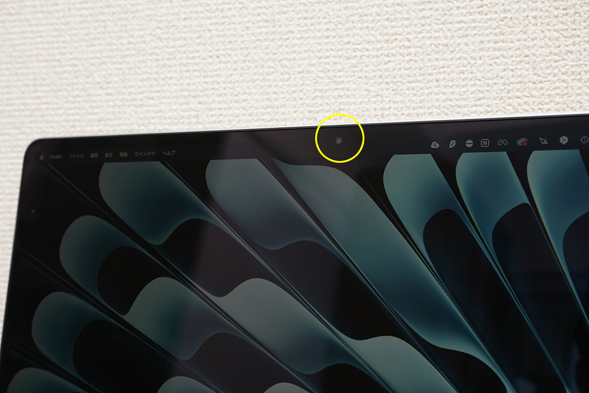 MacBook Airのフロントカメラも、デスクビューに対応する12MPセンターフレームカメラになりました。モバイルノートはM4搭載MacBook Pro以来です。センターフレームやデスクビューもよいのですが、そもそも12MPカメラの画質が良いので満足度が高まります。