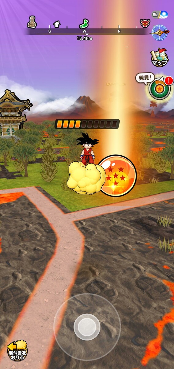 本コラボでは、「ドラゴンボール」の主人公・孫悟空になって筋斗雲に乗り、全国に散らばった7つのドラゴンボールを集める「孫悟空モード」を遊べるのが目玉。すべて集めると願い事をかなえられる。