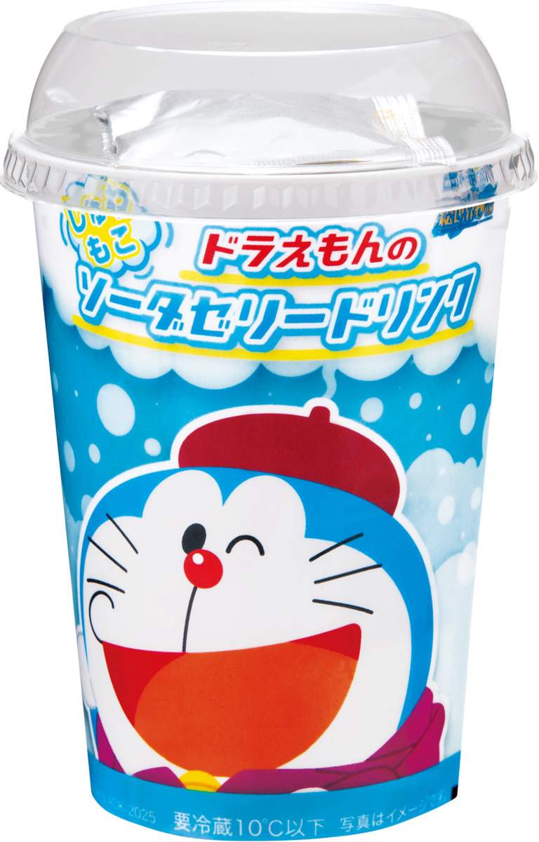 さらに「コーラフラッペ」と「しゅわもこ!ドラえもんのソーダゼリードリンク」も登場。コーラフラッペはパチパチ食感が楽しめるはじけるキャンディをトッピングし、底にはコーラゼリー入り。パッケージは2種類用意されています。