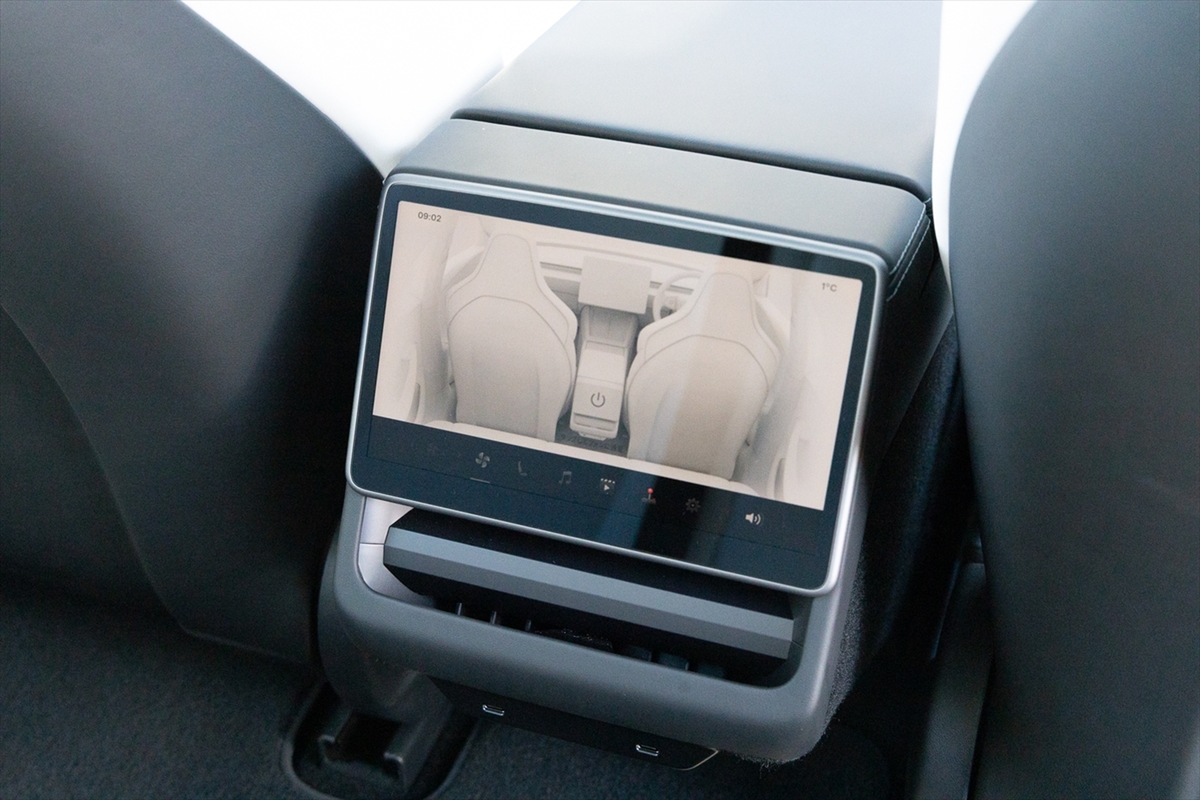 マイナーチェンジで後席の快適さもアップした。8インチのタッチスクリーンディスプレイが設けられ、楽曲の選曲などもできるようになった。またシート形状も変わり、よりヘッドルームが広くなったようだ。