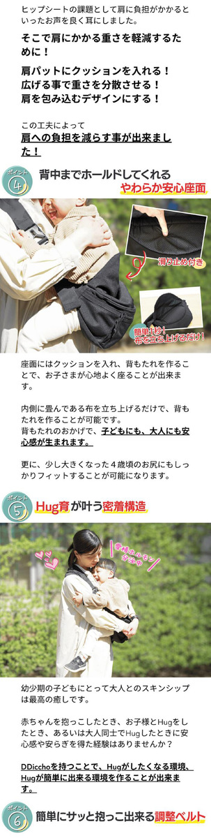 抱っこのお悩みを解決!ショルダー+ヒップシートの「Hug育バッグ」登場