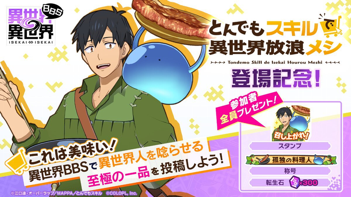 「異世界∞異世界BBS」にて「とんでもスキルで異世界放浪メシ 登場記念キャンペーン!」を開催