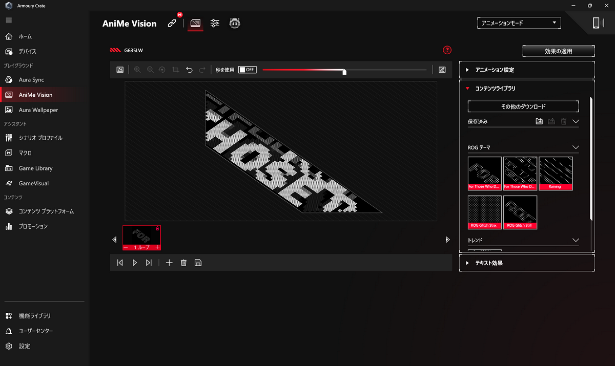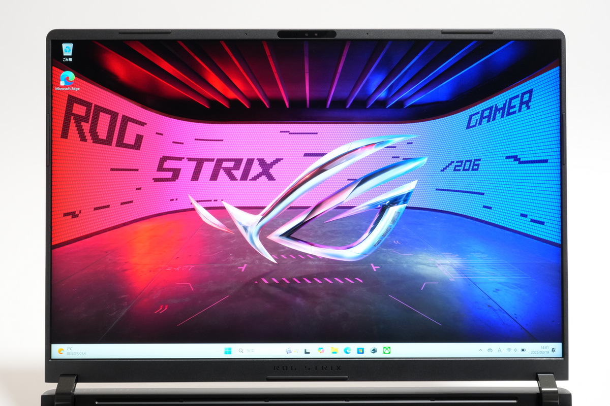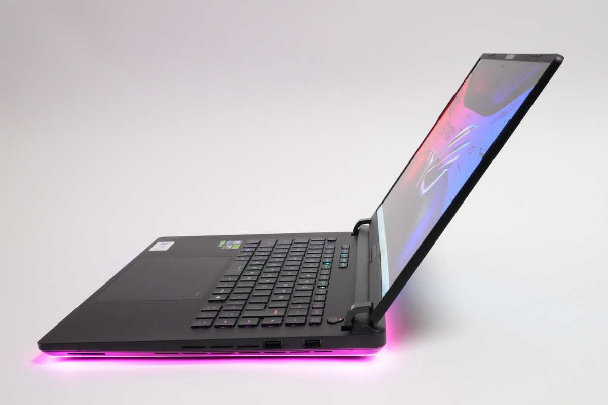ディスプレーは16型2.5K IPS液晶で2560×1600ドット、16:10、リフレッシュレート240Hz、応答速度3ms、輝度1200ニト、DCI-P3カバー率100%、Dolby Vision対応、mini LED、ノングレア、PANTONE認証を採用。背面には810個のLEDと8353個のホールで構成された「AniMe Vision」を、ROG Strixシリーズとして初めて搭載している。