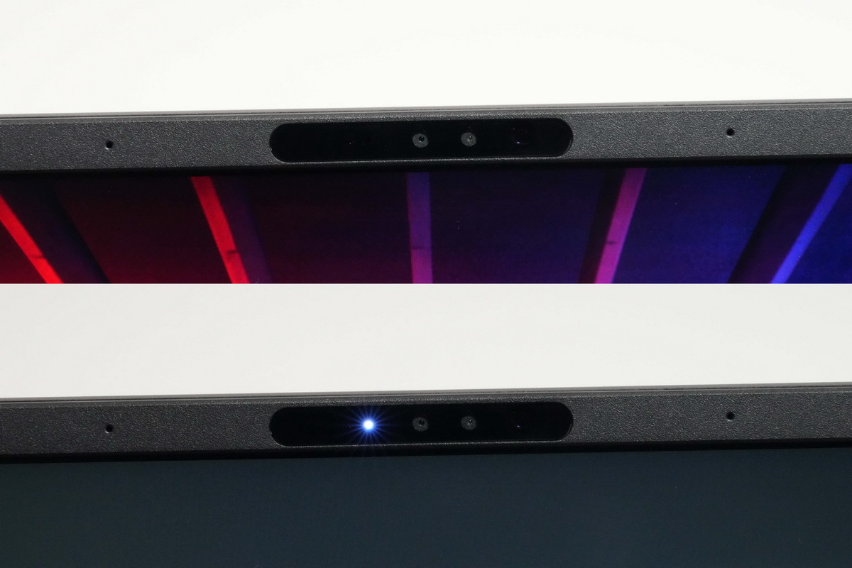 207万画素ウェブカメラはRGBカメラとIRカメラが独立。ハイブリッドタイプより画質的に有利だ。しかし、室内灯下でも明るく撮影できたが、ややノイズが多め。ビデオ会議などでは積極的に低ノイズエフェクトを利用することをオススメする。