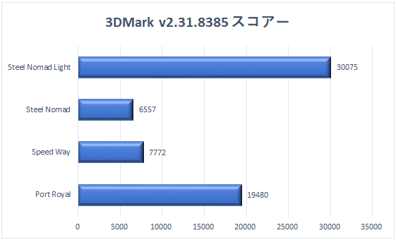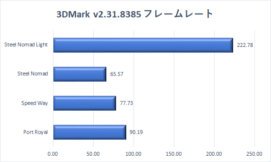 「3DMark」は、昨今のゲームに合わせたバージョンのDirectX 12を使用する「Steel Nomad」と、レンダリング解像度が3840×2160ドットから2560×1440ドットに下がり、負荷の高いGPU処理も省略されている「Steel Nomad Lite」、そしてレイトレーシングを使った高負荷テストの「Speed Way」と「Port Royal」といった4種類のテストプリセットを実行した。