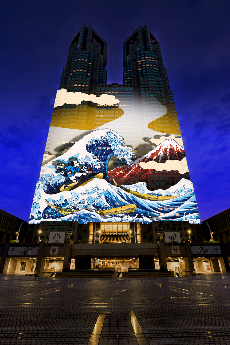 東京都庁プロジェクションマッピング『時を駆ける飛脚』4月5日から上映開始 浮世絵と現代アートが融合