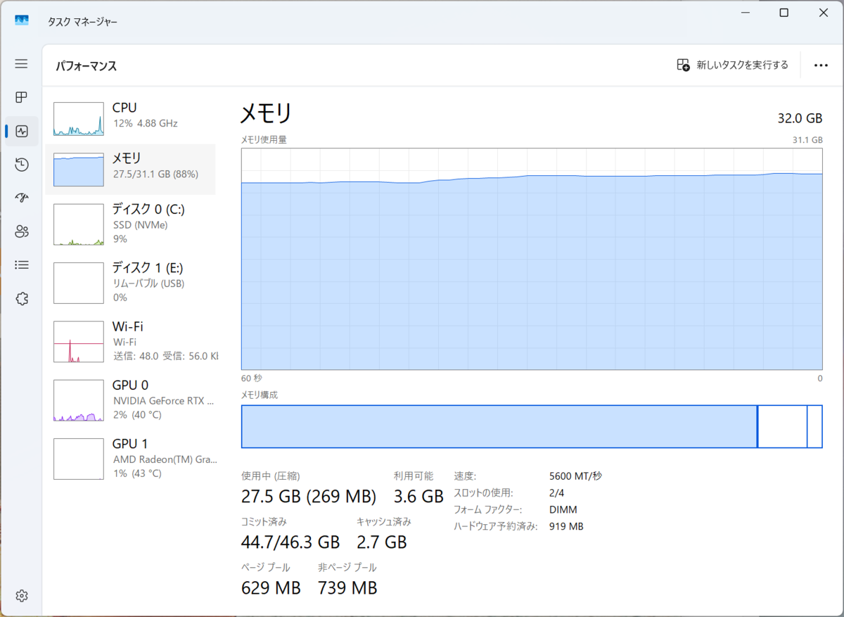 ベンチマークテストにおいては、メモリー容量によって速度的にはあまり差は見られなかったが、複数のアプリを起動して作業することが多かったり、メモリーを大量に使うクリエイティブ系アプリを利用したりすると、メモリー容量はどんどん逼迫し、Windowsによるメモリー圧縮やディスクキャッシュが発生すると、動作が重くなることは確実。