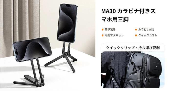 アイデア次第で使い方無限大! スマホ三脚の決定版 カラビナ付きだから「持ち歩く」のが楽しくなる! Ulanzi MA30 カラビナ付きスマホ用三脚を発売中。