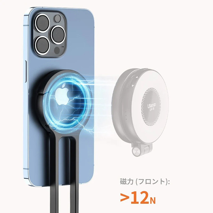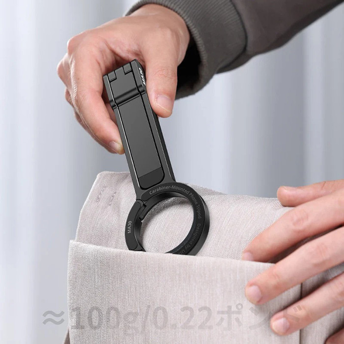 「Ulanzi MA30」は、磁力でスマートフォンに装着することで、撮影の際の三脚、または自撮り棒の代わりとして、あなたの撮影ライフを強力にサポートします。強力な磁気吸着力を持ち、スマートフォンをしっかりと固定し、安定した映像や写真撮影が可能。荷物にならない軽量設計、コンパクトなデザイン、そして超便利なカラビナ付きで、カバンなどに簡単に引っ掛けられます。