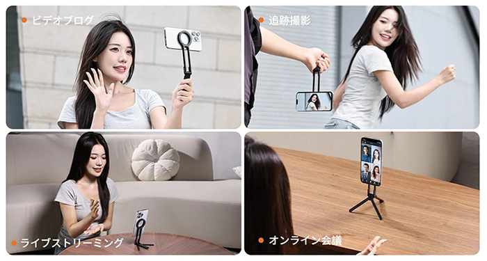 ◉ 強力な吸着力: 磁気アクセサリにより、携帯電話をしっかり固定。高い安定性を提供し、撮影ブレを軽減します。