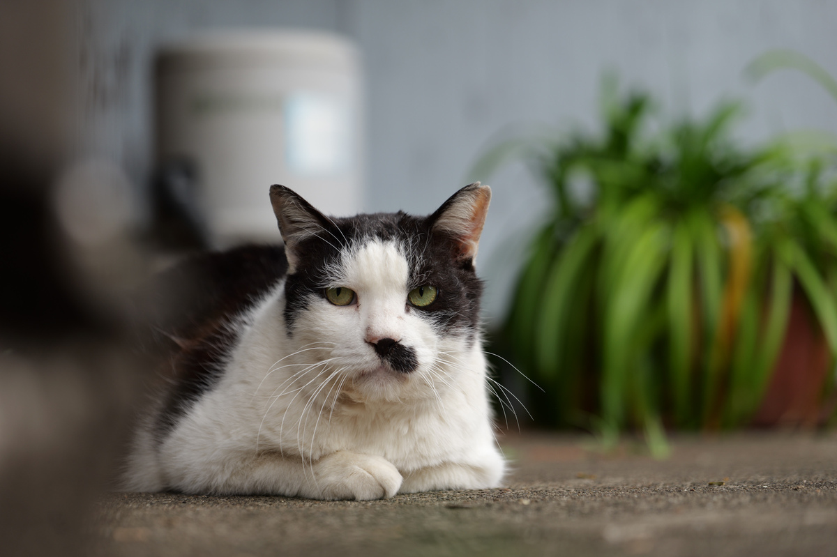 今回は、フェンス越しとか草越しとか手前に障害物がある猫にばかり出会ってしまったので、冒頭写真もその流れで。これもフェンス下の隙間から撮った猫だ。
