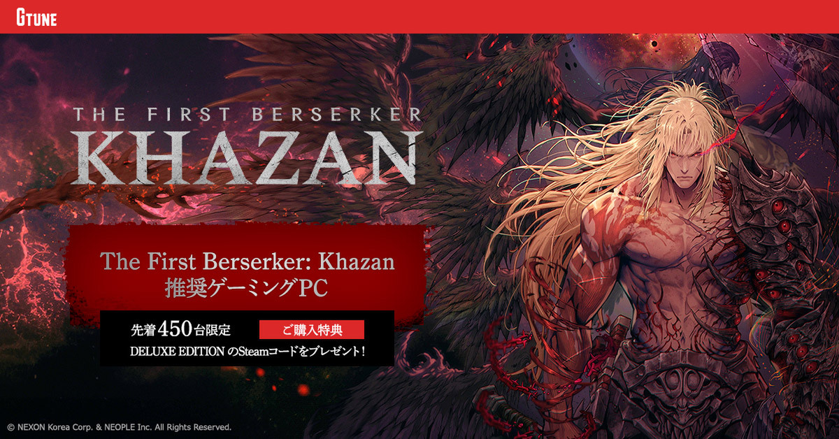 マウスコンピューターは3月31日、ネクソンの『The First Berserker: Khazan』の推奨ゲーミングパソコンを販売開始すると発表した。発売を記念して、購入者先着450名に『The First Berserker: Khazan DELUXE EDITION』をプレゼントするキャンペーンを行う。