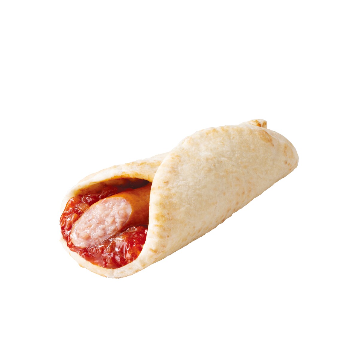 パリッと食感のポークソーセージにハインツの味わい深いトマトケチャップをあわせたトルティーヤ。