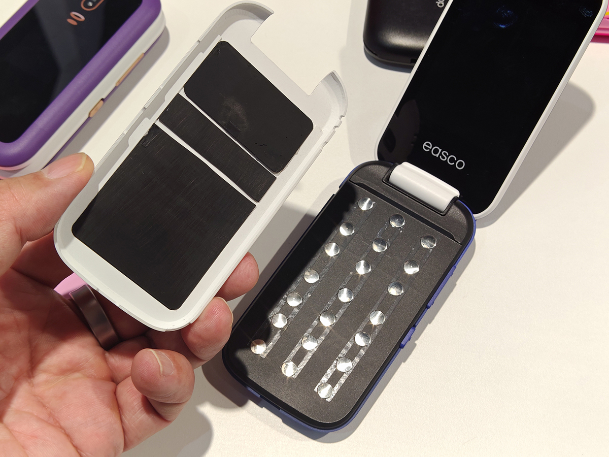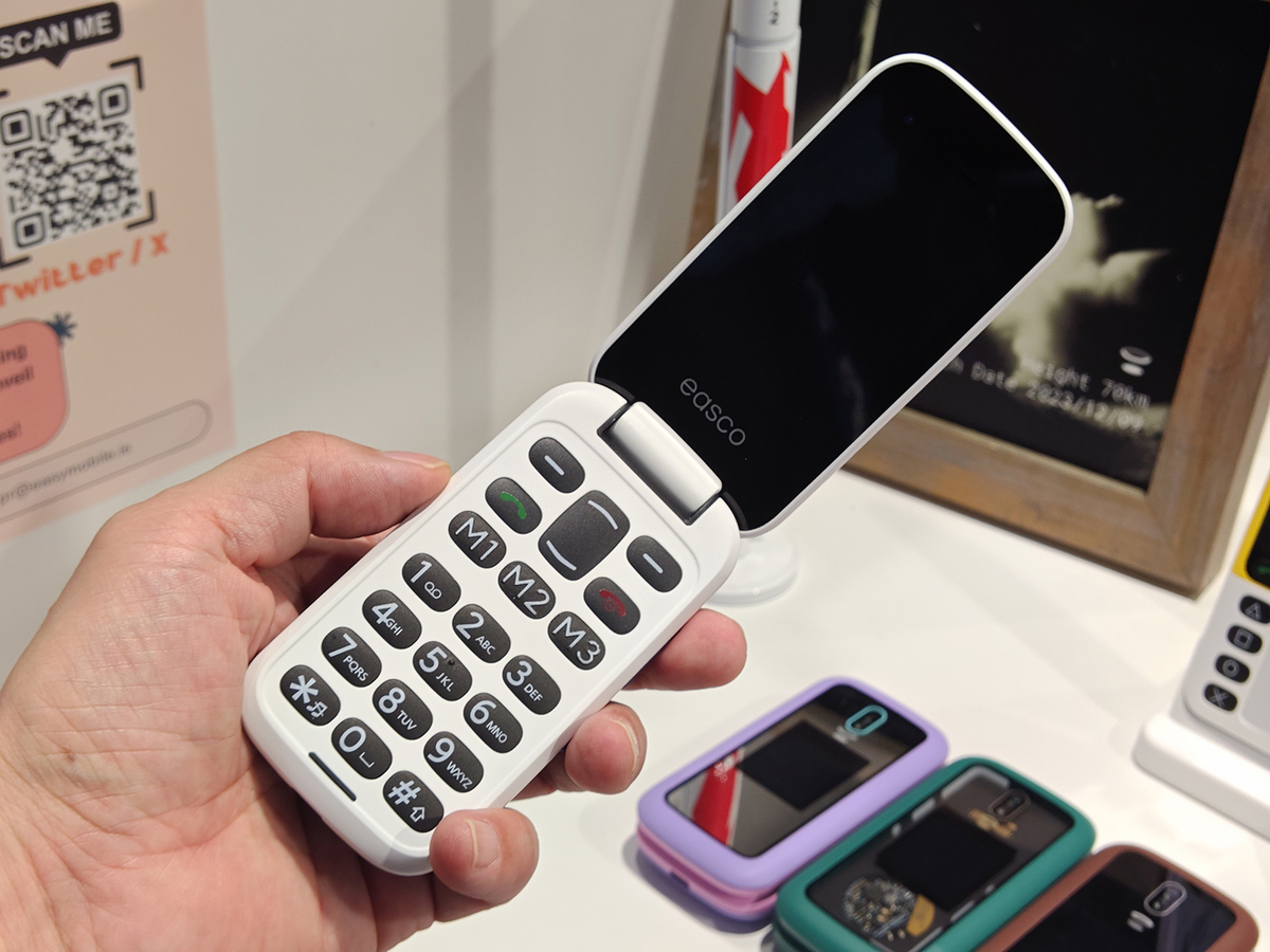 フリップタイプの「Easco Phone Flip1 Pro」の本体サイズは約107.7×56.7×20.4mm、重量は150g。メインディスプレーは2.8型(320×240ドット)、アウトディスプレーは1.8型、背面カバーは取り外しでき、1000mAhのバッテリーも交換式です。3.5mmヘッドフォンジャックも備え、通信方式はLTEに対応。性能は今時のフィーチャーフォンとしては一般的です。