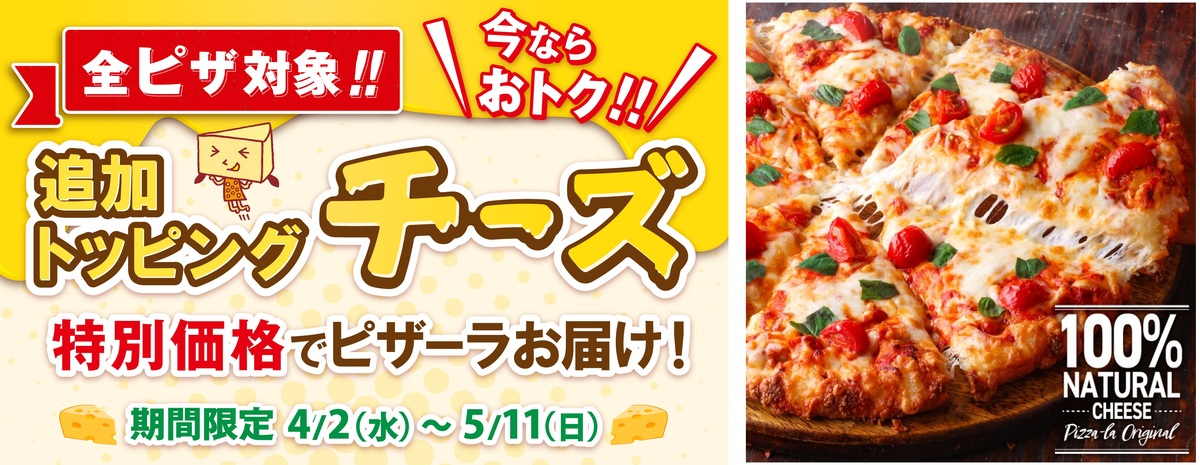ピザーラは4月2日から5月11日まで、追加トッピング「チーズ」を特別価格で提供するキャンペーンを実施する。