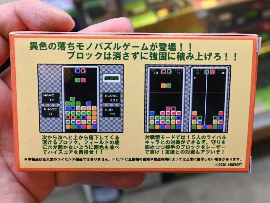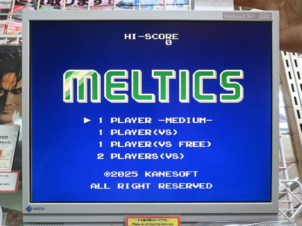ファミコンまたはその互換機でプレイできる新作落ちモノパズルゲーム「MELTICS」が発売。家電のケンちゃんにて7920円で販売されている。