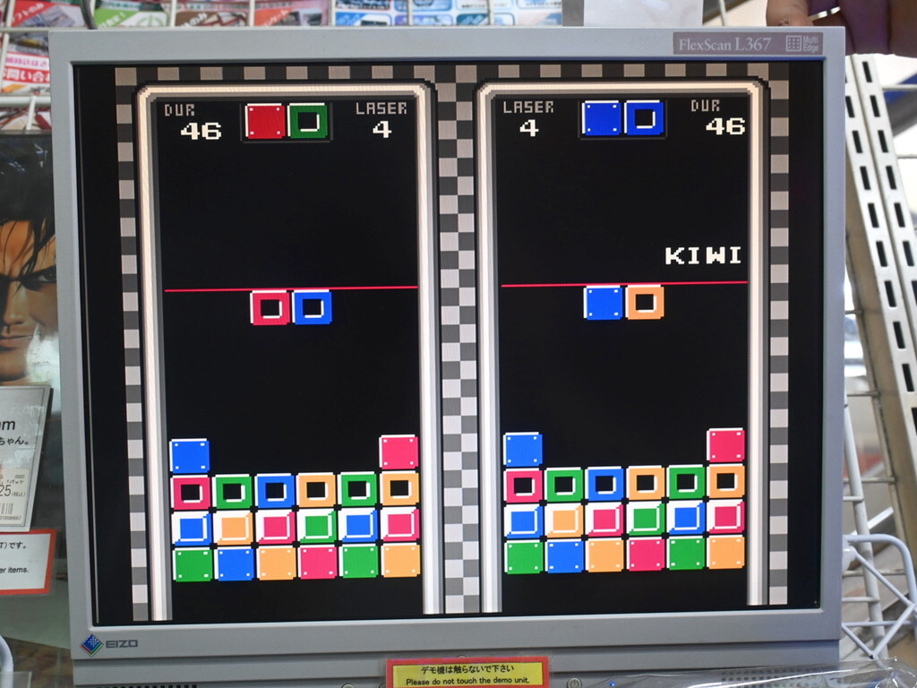 ゲームでは、耐久値が1/2/4に設定された各4色のブロックが登場。落下したブロックが同色のブロックに隣接しなかった場合に「その下の耐久値4ポイント分のブロックが溶ける」というルールになっている。ブロックが溶けて底まで穴が貫通してしまうとゲームオーバーだ。