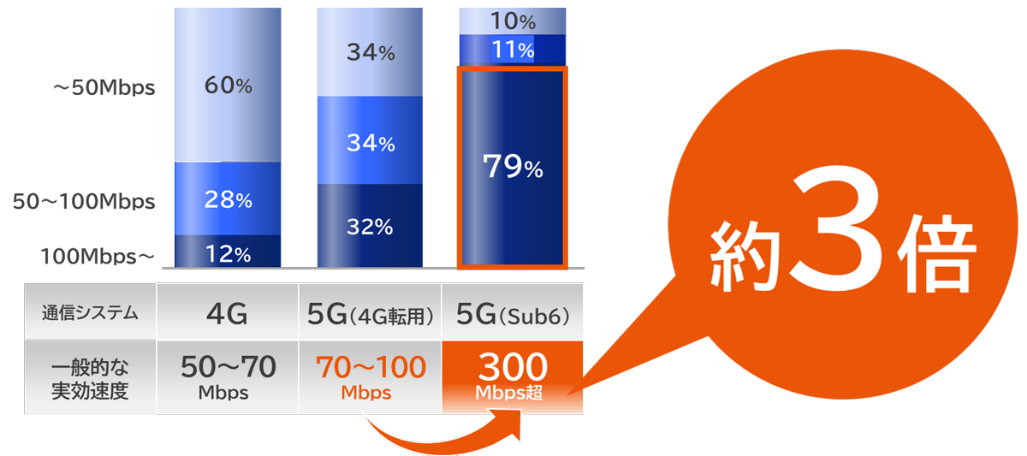 同社では、サブ6の5G基地局の数で他社を大きく上回るとしており、特に通信衛星との干渉がなくなり、出力の制限が緩和された昨春以降、高速大容量な5Gネットワークを実現できているとアピールしている。