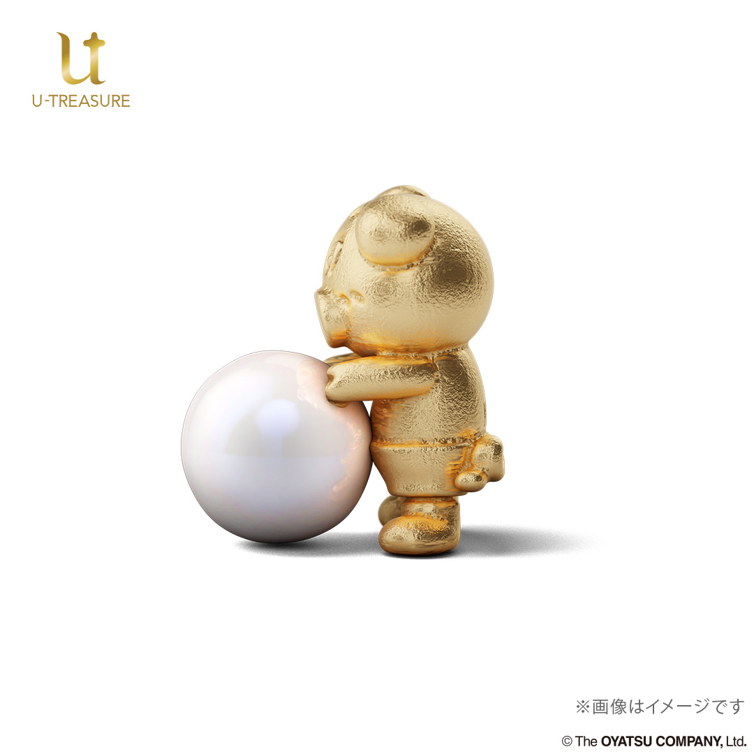 塾や部活後のおやつとして食べた思い出のある方も多い「ブタメン」のキャラクターが純金フィギュアになって登場! 本物の真珠を抱えたデザインも粋ですね。