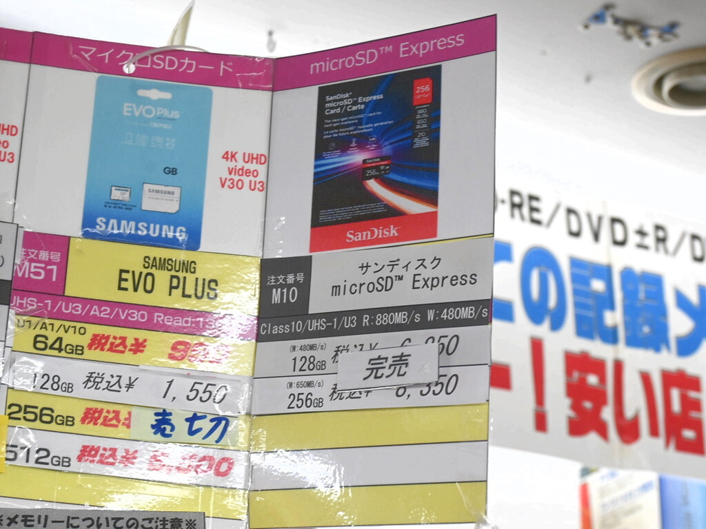 Nintendo Switch 2への採用が正式に発表されたことにより、これまで一般向けにはほとんど注目されていなかったmicroSD Expressカードに注目が集中。アキバ店頭でも購入希望者が殺到し、あっという間に売り切れ状態になってしまった。