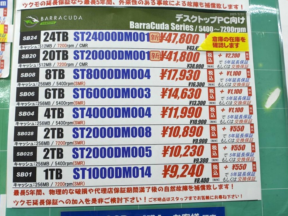Seagateの3.5インチHDD「Barracuda」シリーズから、容量16TBの「ST16000DM001」が発売された。価格は3万7800円。秋葉原ではパソコンショップアーク、パソコン工房 秋葉原パーツ館、ツクモパソコン本店、TSUKUMO eX.で販売中だ。