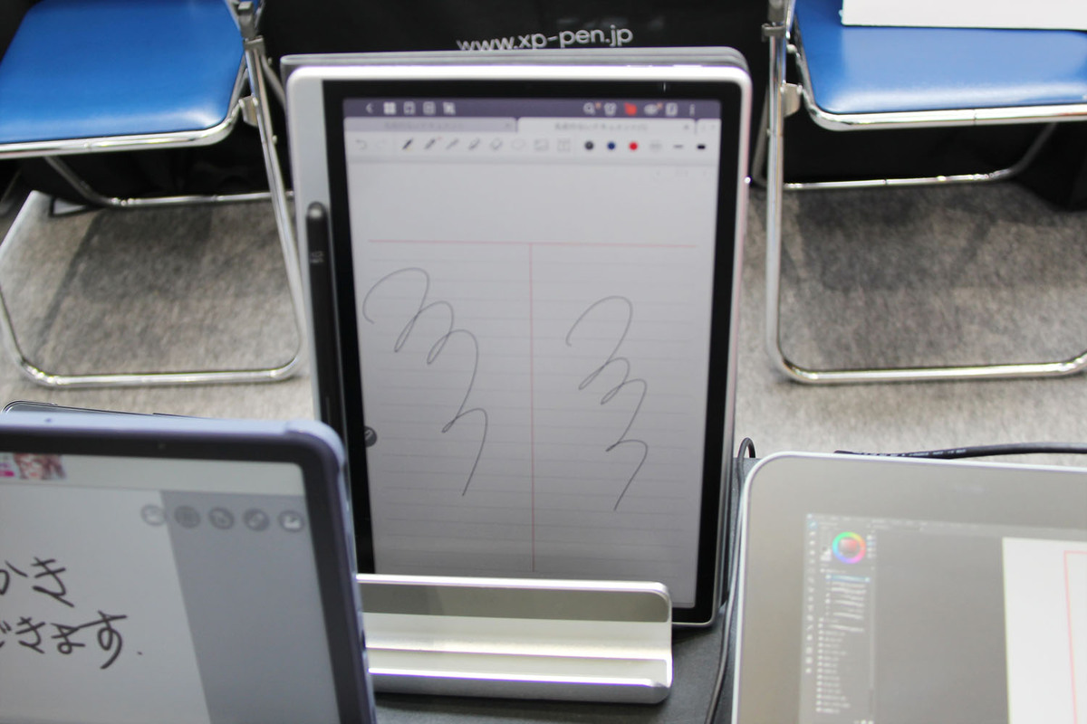 来週発売のAndroidタブレット「MagicNotePad」を先行展示。予価は6万5990円。筆圧感度が16384レベルと、一般的なタブレットの約4倍の感度なのが特徴だ